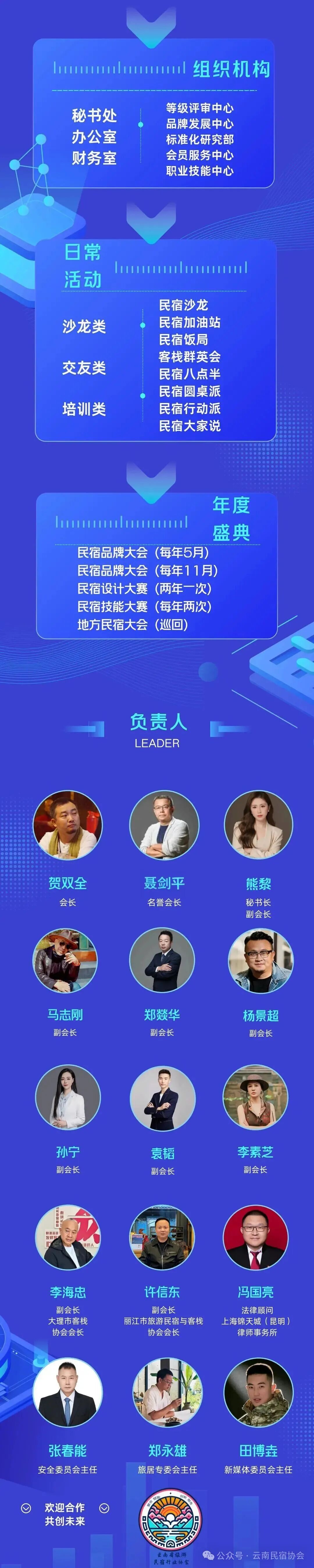 云南省旅游民宿行业协会组织机构和负责人照片...