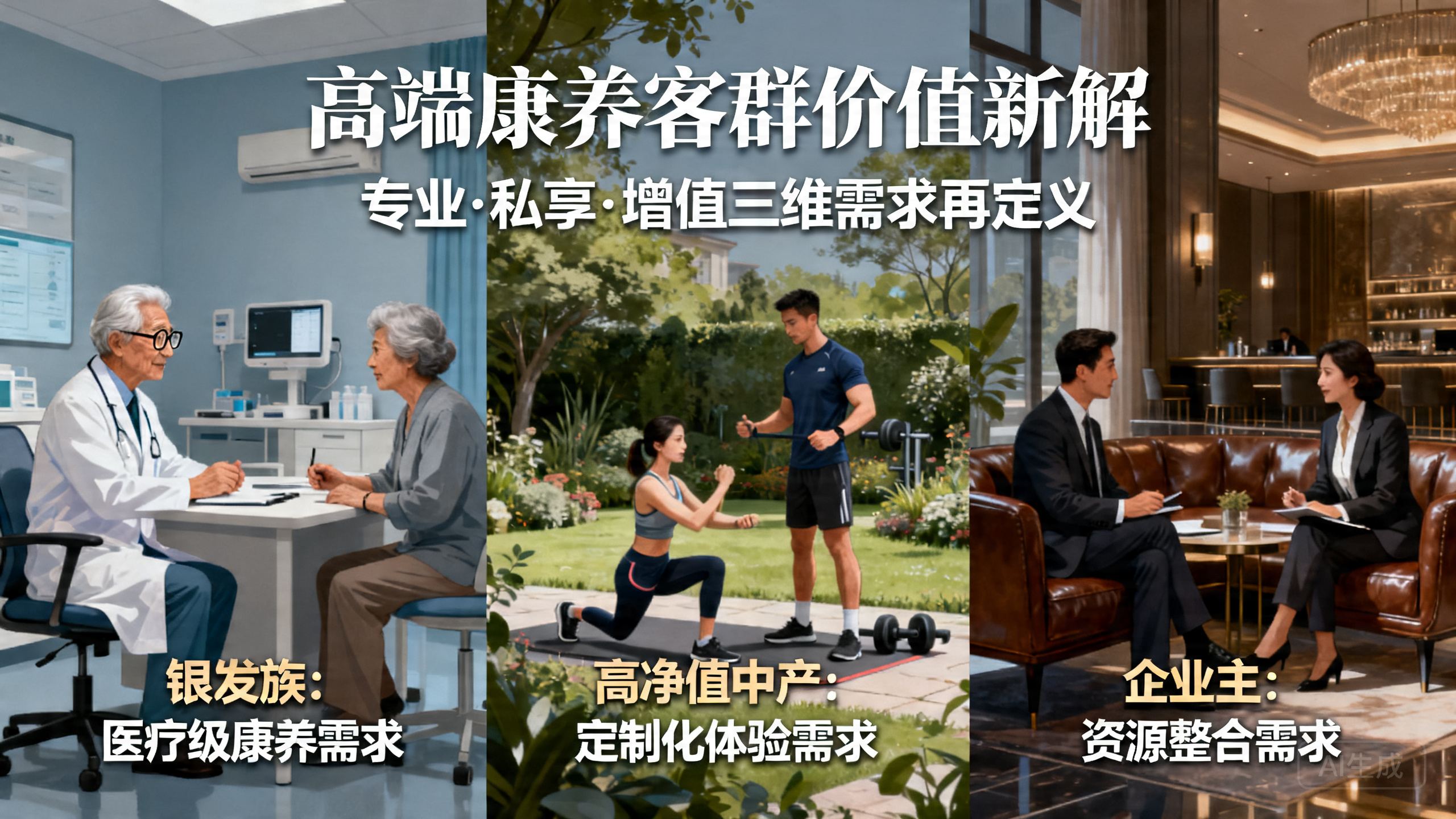 深度剖析完这三类核心客群画像,我们不难得出一个结论:高端康养的本质,并非简单的高价格,而是一种“精准的价值匹配”。 消费者不再为模糊的“高端”概念买单,他们只会为那些能够精准解决他们“健康痛点”、满足他们“精神追求”、或维系他们“家庭情感”的、清晰而具体的价值买单。
