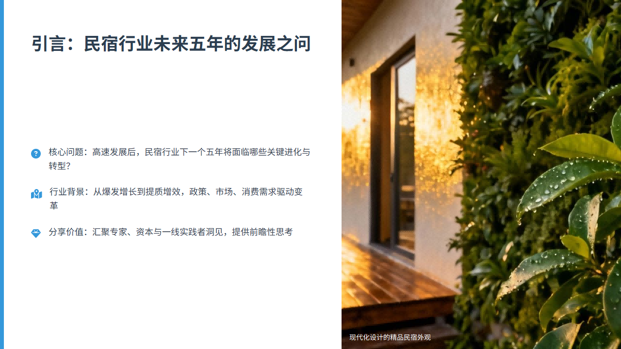 “如果让我用一个词来定义民宿的下一个五年,那就是‘专业主义’的全面胜利。” 一位长期观察文旅行业的资深教授,在他的研究报告中这样写道。