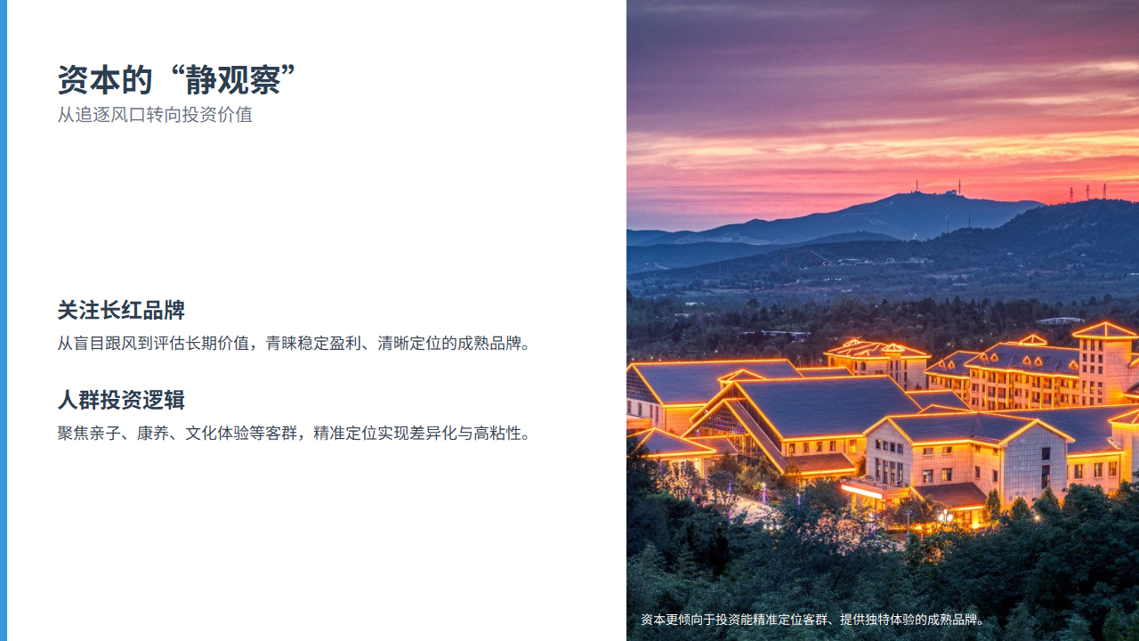 从“空间”到“人群”: 资本的目光,正从对“一栋房子”的投资,转向对“一群人”的投资。他们会问:“你的民宿,精准地服务于哪一群人?是银发康养群体?是数字游民社群?还是户外运动爱好者?你对这群人的理解,有多深?你的‘黏性’,有多强?”
