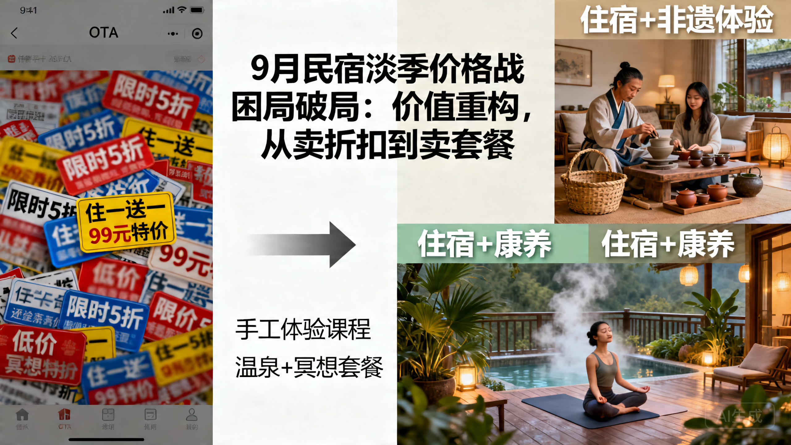 对于每一位民宿主而言,九月,不应是唉声叹气、坐困愁城的月份,而应是思考、学习、行动、链接的月份。请放下手中的“价格屠刀”,拿起“价值手术刀”,对自己进行一次深刻的剖-析与重塑。