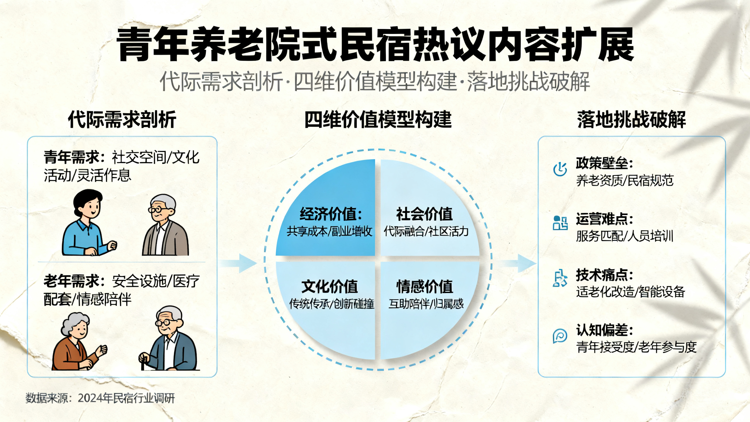 ① 先试点 “季节性共居”(如寒暑假集中运营);② 制作《代际共居白皮书》,用数据破除偏见