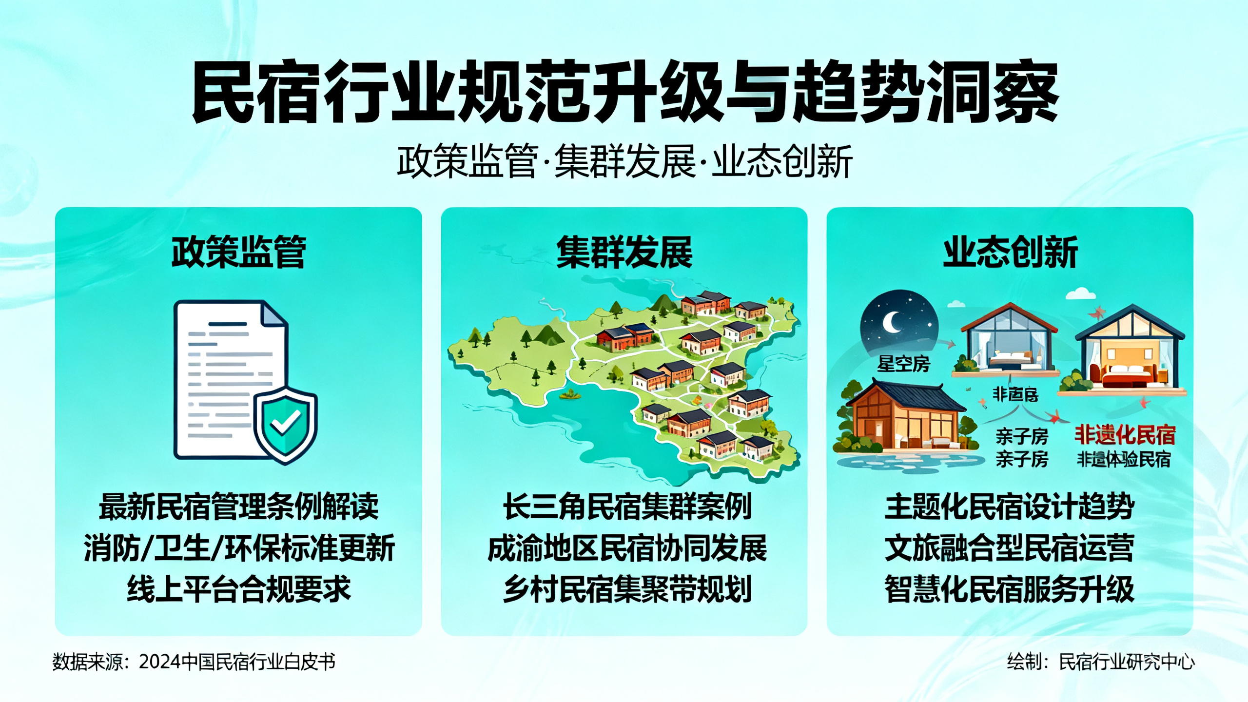 - 明确民宿管家持证上岗、建立统一服务与营销体系等规范