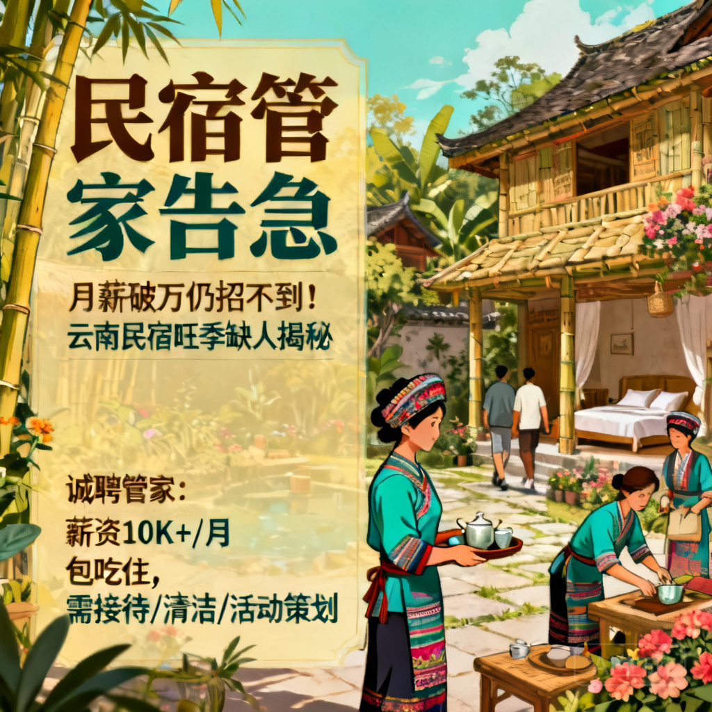 旺季招聘难:尽管云南民宿管家月薪已突破万元,2024年旺季招聘成功率仅40%,供需失衡严重。