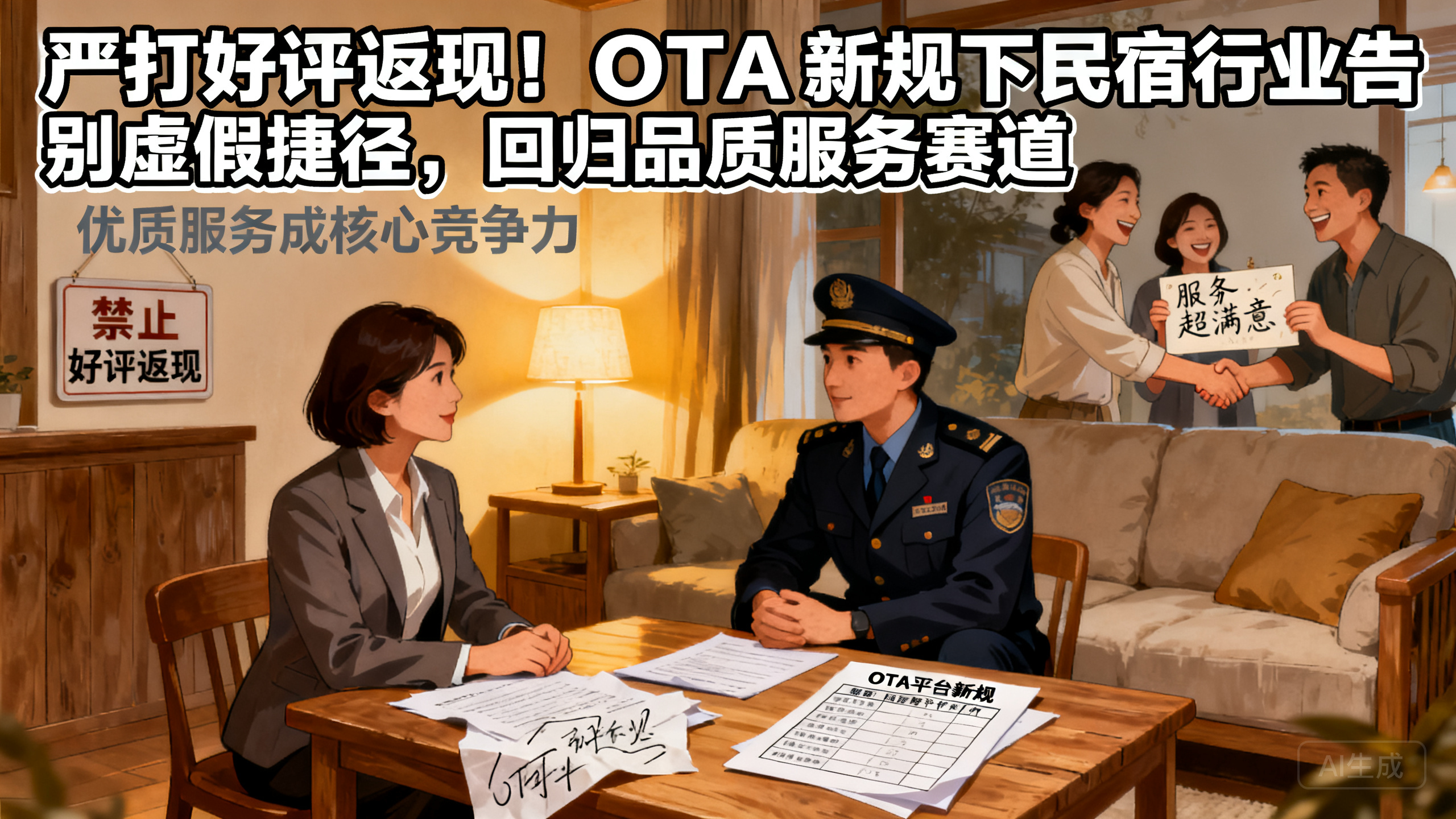 六月的旅游旺季,本应是民宿业者收获耕耘、喜迎八方客的季节。然而,一则重磅消息却在行业内投下了“深水炸弹”:各大OTA平台及监管部门正以前所未有的力度,联合严打“好评返现”、“引导好评”等虚假营销行为。 那些曾被一些经营者视为快速提升评分、获取流量“捷径”的灰色操作,正在被彻底堵死。