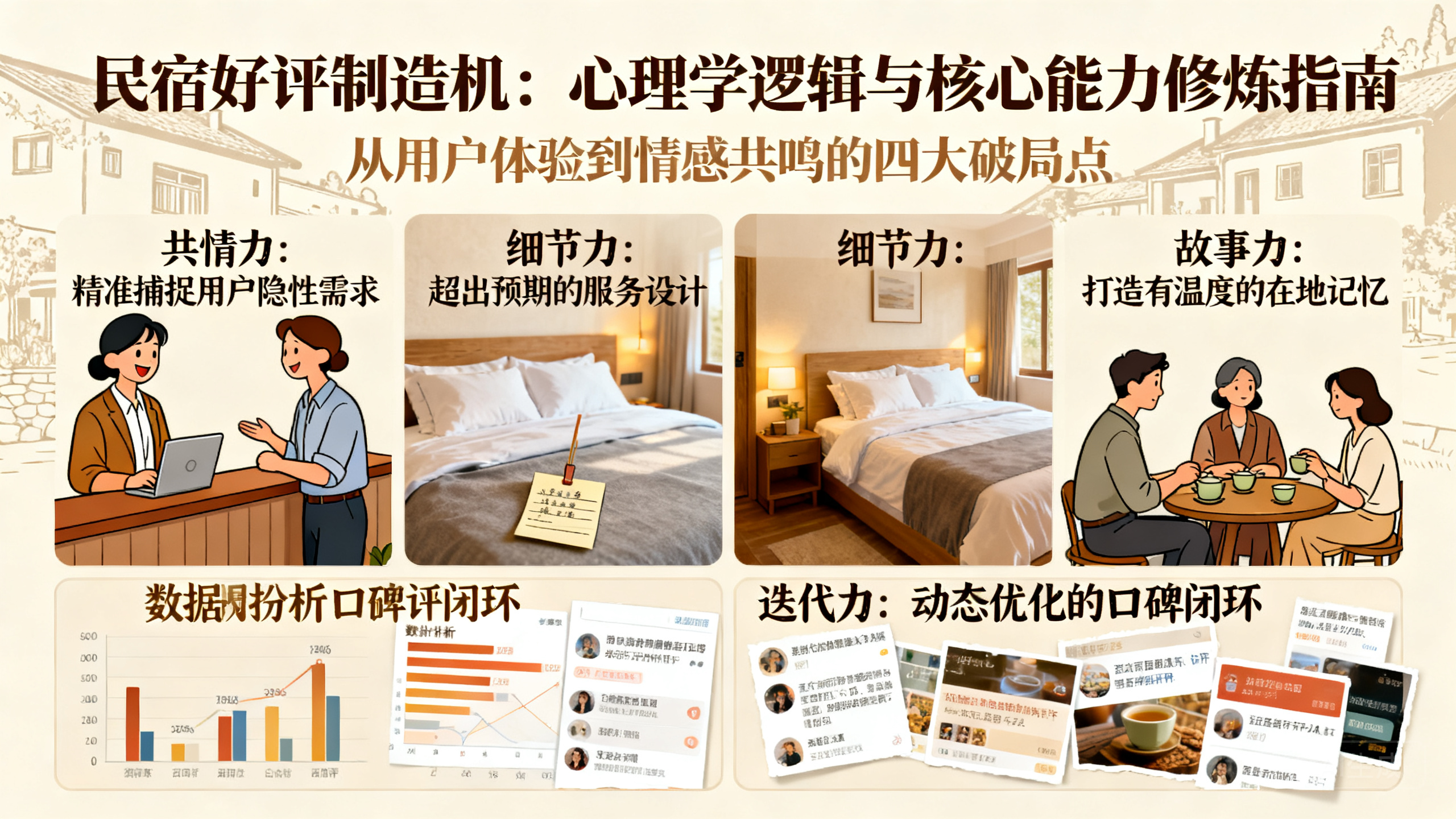 让我们相信“真本事”的力量,相信口碑的复利效应。因为,当你的民宿真正成为客人旅途中那个难忘的“峰值”体验,成为他们愿意主动向朋友讲述的精彩故事时,那些闪闪发光的五星好评,自然会纷至沓来。而这些,才是你最宝贵的、任何人都无法夺走的品牌资产。