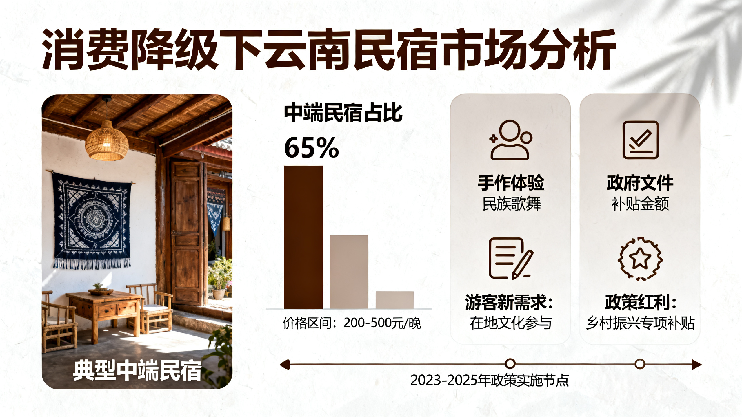 游客需求:游客追求“微度假”、文化体验与情感价值,拒绝高价低质的“网红民宿”。