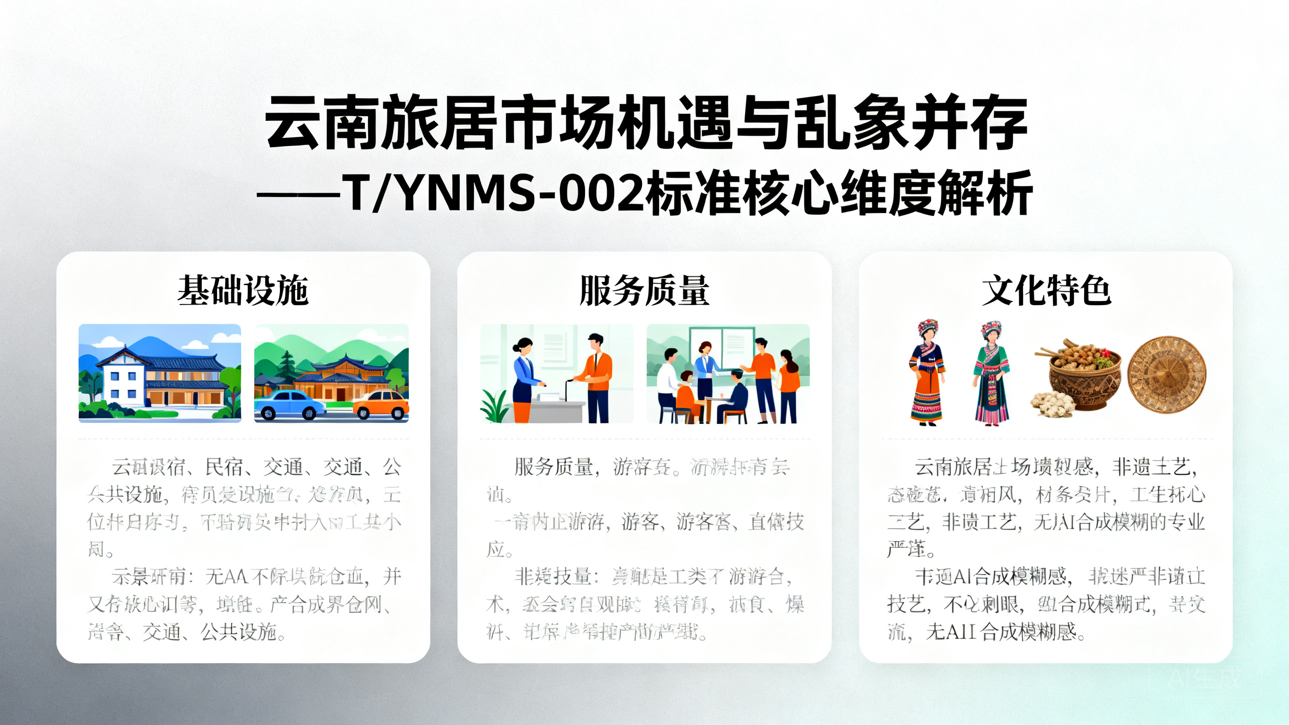 导读:由云南省旅游民宿行业协会立项发布的T/YNMS-002《旅居云南品牌民宿认定与评价规范》,搭建起六大核心评价维度体系,涵盖基础设施、服务质量、文化特色、管理水平、客户满意度及社会效益,全方位界定云南品牌旅居民宿的评定标准。本文将全面拆解各维度的核心指标、评分规则与权重逻辑,为云南民宿经营者精准对标行业标准、系统化提升经营品质、打造品牌竞争力提供清晰的实操指引。