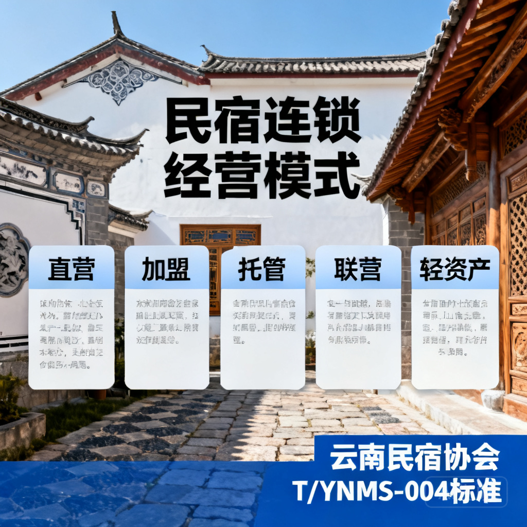 为推动民宿行业向标准化、品牌化、连锁化方向迈进,云南省旅游民宿行业协会牵头立项了T/YNMS-004标准,由云南丹青里企业管理有限公司作为主要起草单位,系统梳理了民宿连锁经营的五种核心模式及其标准化管理要求。该标准不仅服务于云南本地民宿品牌的升级发展,更面向全国民宿行业提供可复制、可推广的连锁经营指南。本文将深入解析直营、加盟、托管、联营和轻资产五种模式,从投资门槛、管理要求、收益分配、适用场景等维度进行全面剖析,并结合云南本土优秀品牌的实践经验,为从业者提供系统性参考。